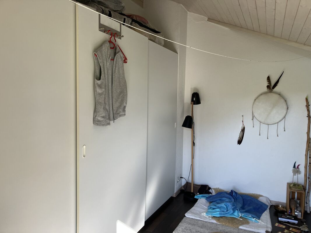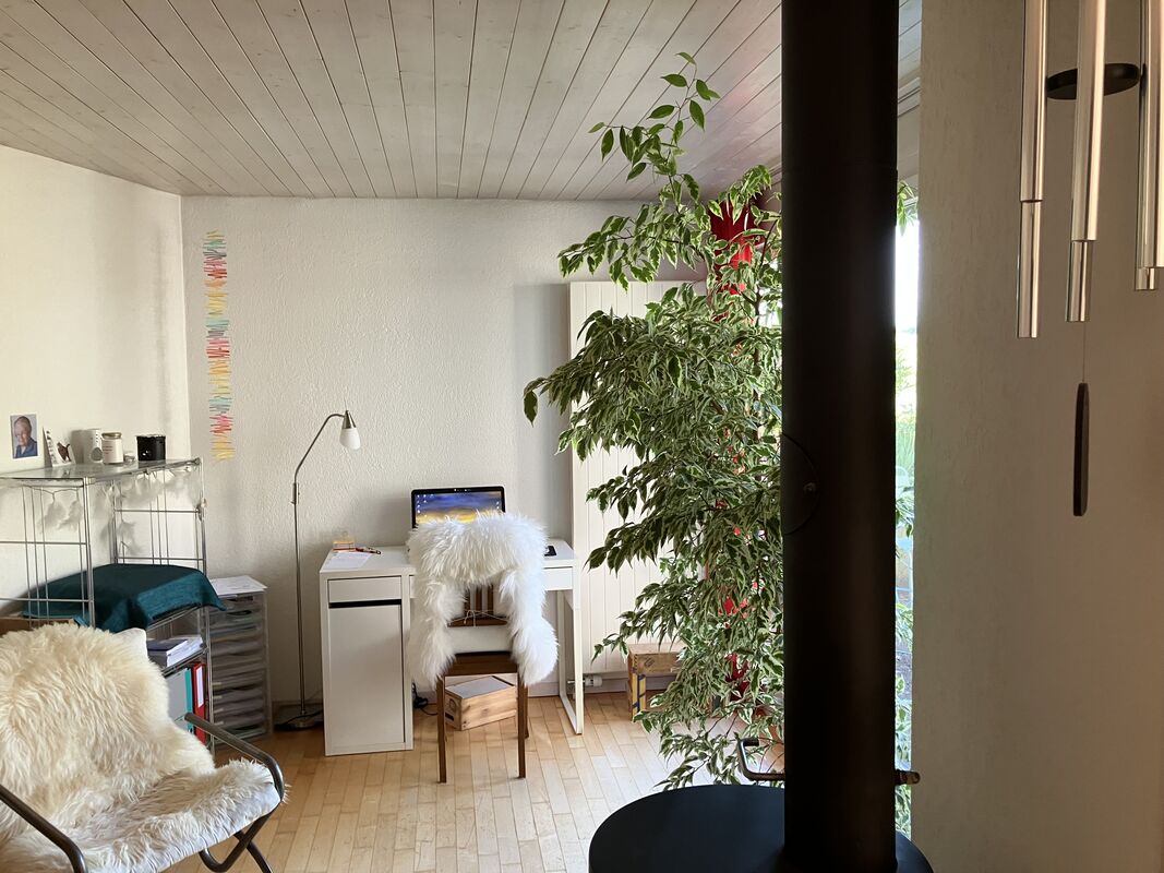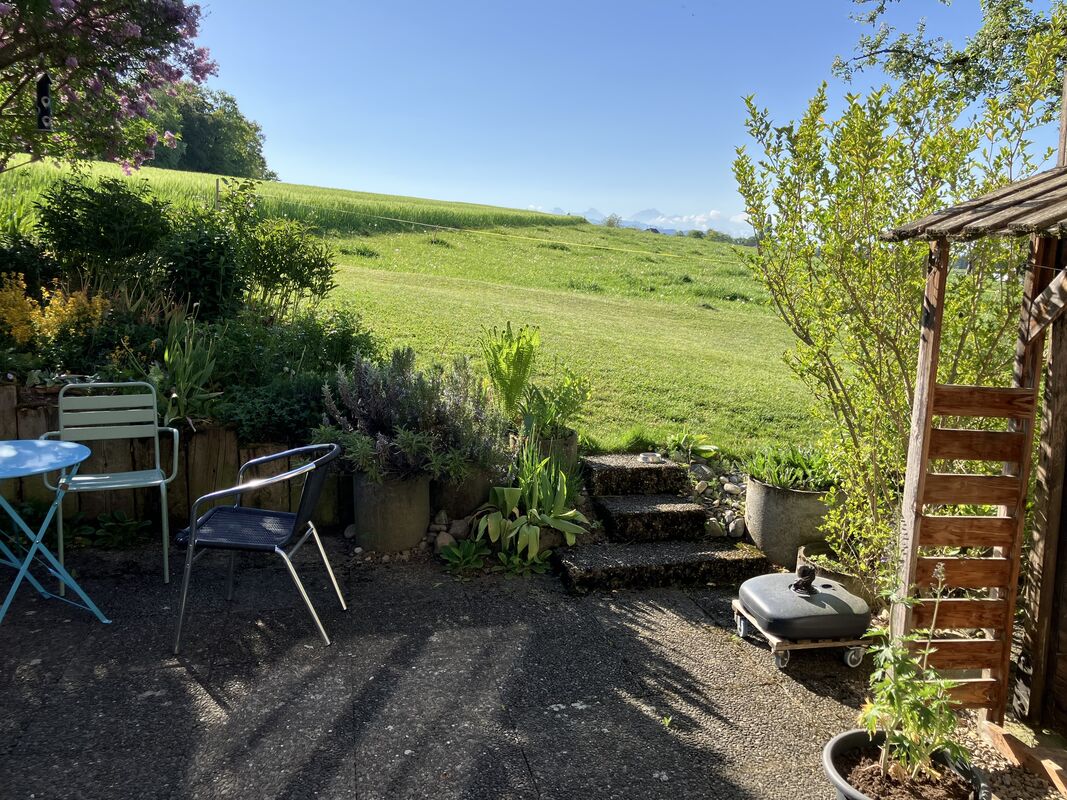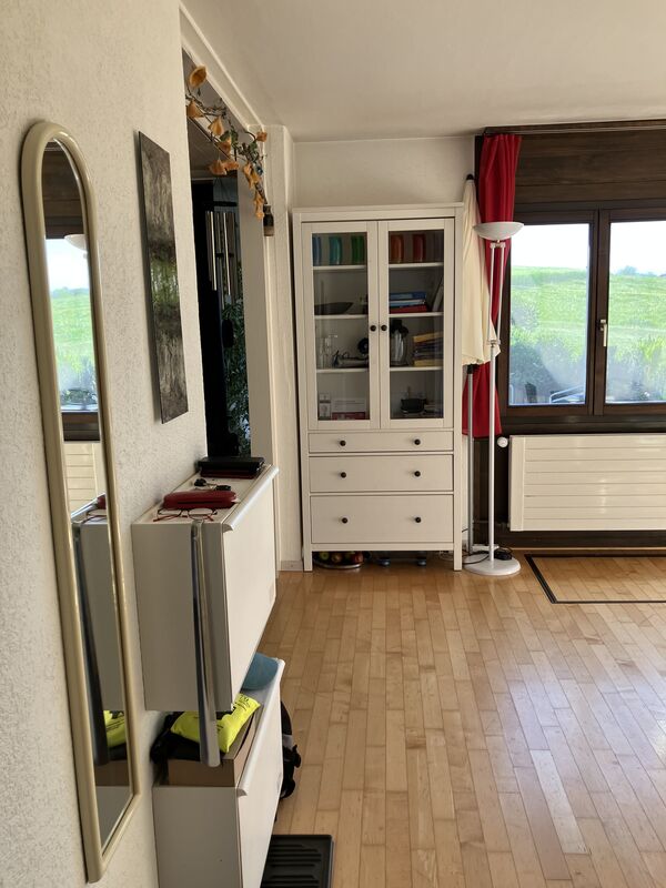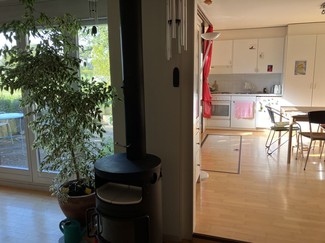 Wohnküche, Wohnzimmer mit Cheminéeofen, interne Treppe zu Schlafzimmer mit Balkon, Keller/Reduit, Waschküche-Mitbenützung (Waschmaschine/Tumber), eigener Gartensitzplatz, reservierter Parkplatz, Veloraum, durchgehend Parkett, neu renoviert, auf Wunsch Gartenanteil, am Dorfrand alleinstehend, Bergsicht, ideal für Einpersonenhaushalt