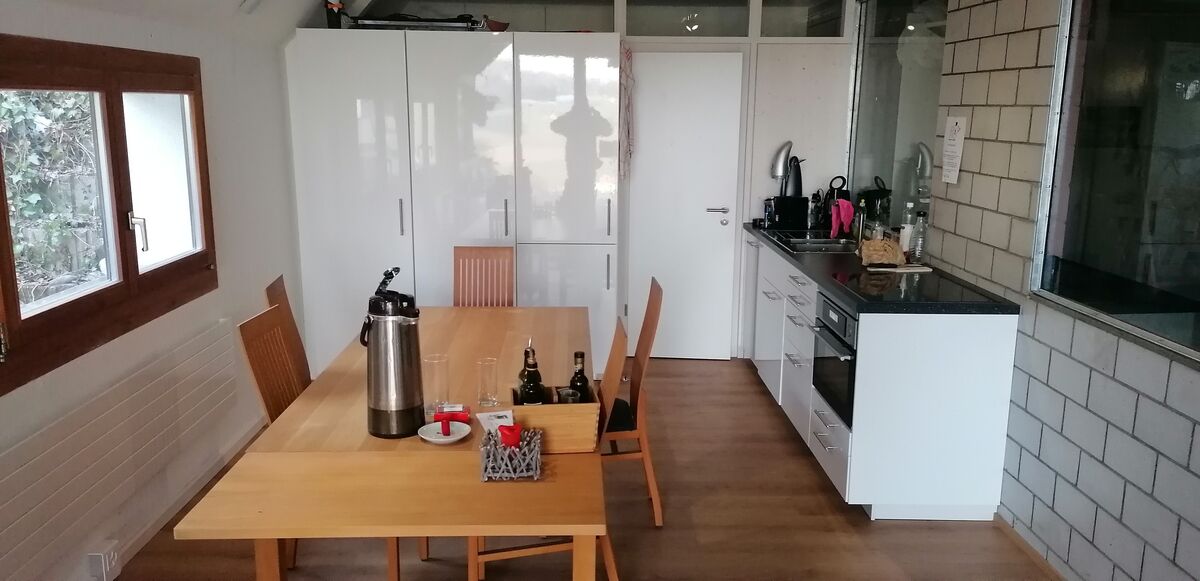 Helle, neu eingerichtete moderne Studiowohnung mit einmaliger Aussicht in schöner Höhenlage in Arni. Attraktive Aussenanlage mit wahlweise gedeckten oder offenem Schwimmbad.