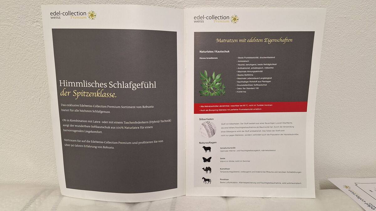 Zum Verkauf stehen 2 Neuwertige nur 10 Monate alte Robusta Natura Premium 7 Naturlatex Matratzen 100x200x26cm. Der Zustand ist wie neu, die Matratzen wurden nur wenige Wochen als Testschlafmatratzen benutzt. Der Neupreis war 4335Fr. für 2 Stk. jetzt zum Top Preis 1800Fr. beide zusammen!! Abholung in 3672 Oberdiessbach. Info unter: 078 818 68 78