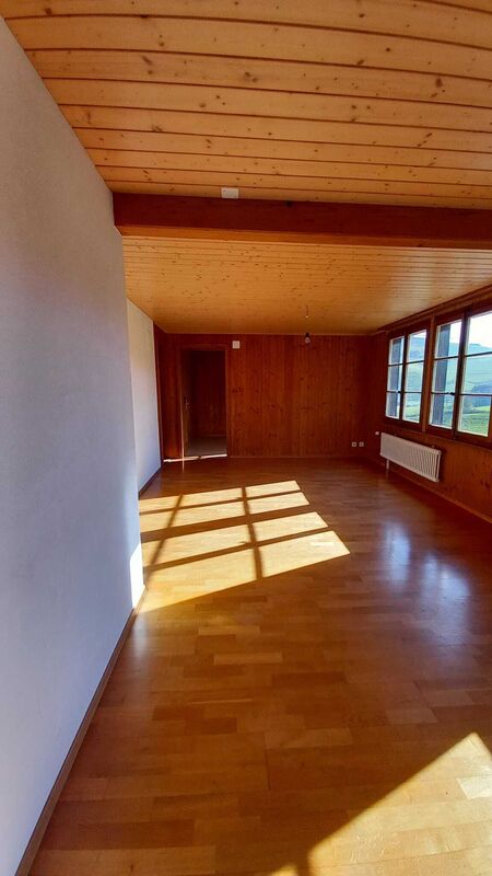 Gemütliche 3 Zimmer Wohnung mit Keller Abteil, Gartenplatz mit Grill, Waschmaschine und Abwaschmaschine in der Wohnung, Badewanne, Trockenraum zur gemeinschaft Nutzung. Parkplatz inbegriffen. 1 Stock. ÖV 300m Bushaltestelle. Keine Haustiere. Wohnung für eine Person geeignet. Bitte melden Sie sich bei Fritz Fankhauser 079 683 58 00
