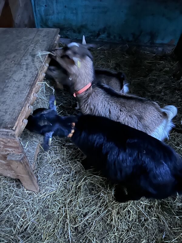 3 weibliche Zwergziegen suchen neues Zuhause. Am Besten wäre wenn alle zusammenbleiben könnten. Mutter und Tochter, braun, die andere schwarz. Bei Interesse bitte melden