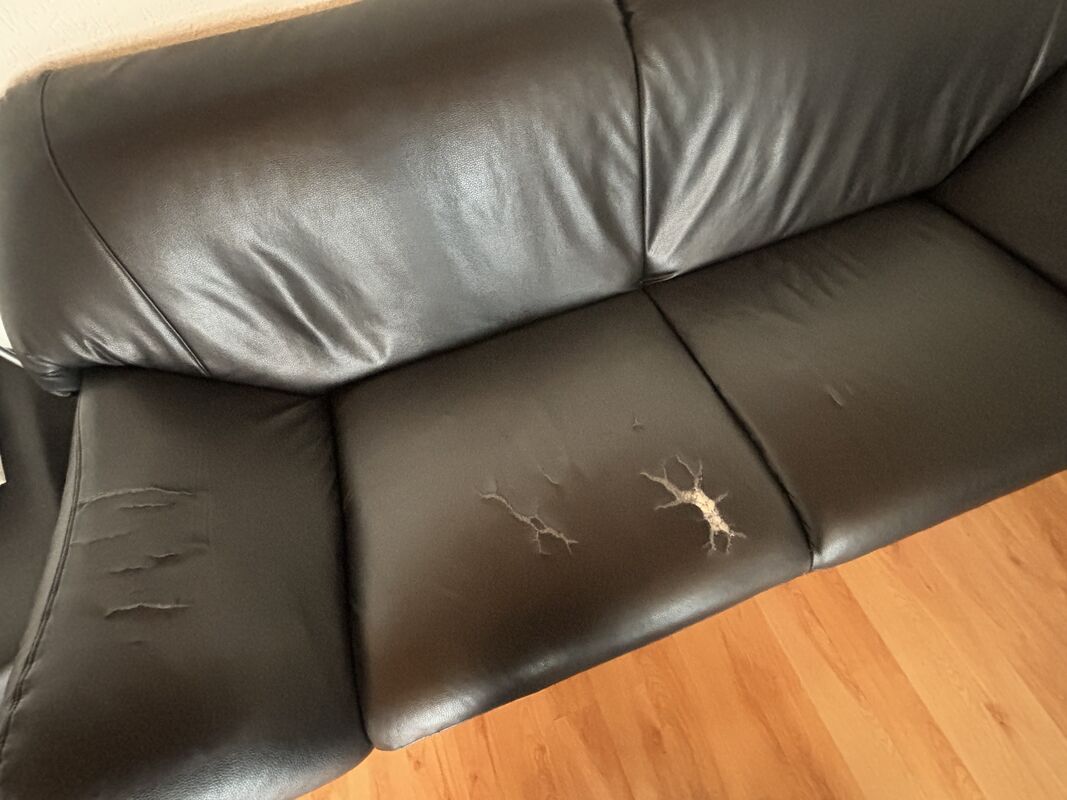 3 er: Polsterung etc gut. Leder an 3 Stellen gerissen. Kann gut mit Decke etc kaschiert werden
