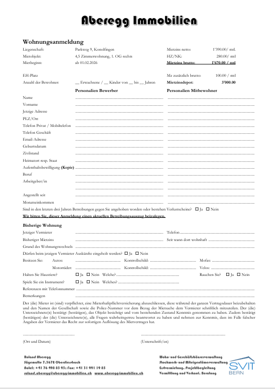 Einstellhallenplätze können für monatlich CHF 100 dazu gemietet werden.