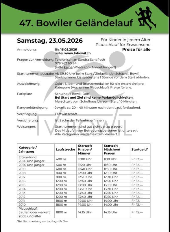 Anmeldung bis Samstag, 16. Mai 2026 unter www.tvbowil.ch