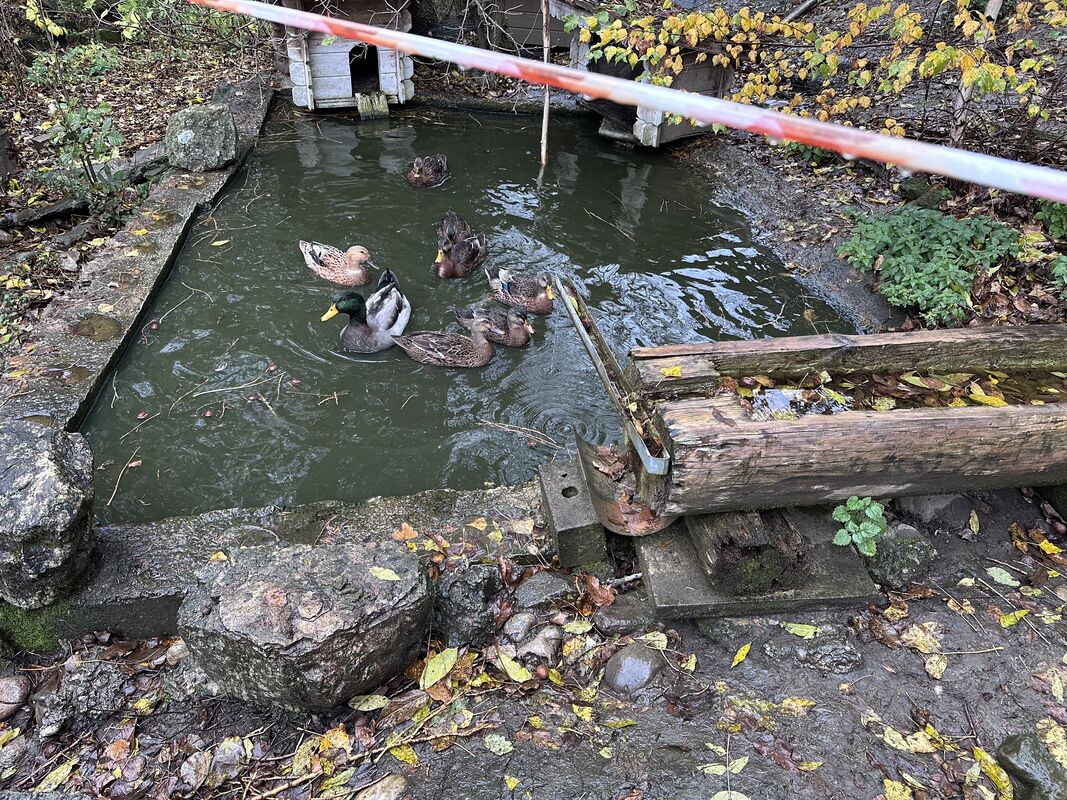 6 Stockenten vom 15.07.2025 zu verkaufen. Besichtigen in Zäziwil. Links auf den Fotos sind die Eltern zu sehen. grüner Hals Erpel, Entenmutter die hellbraune