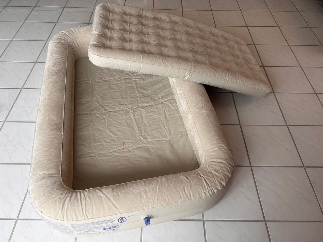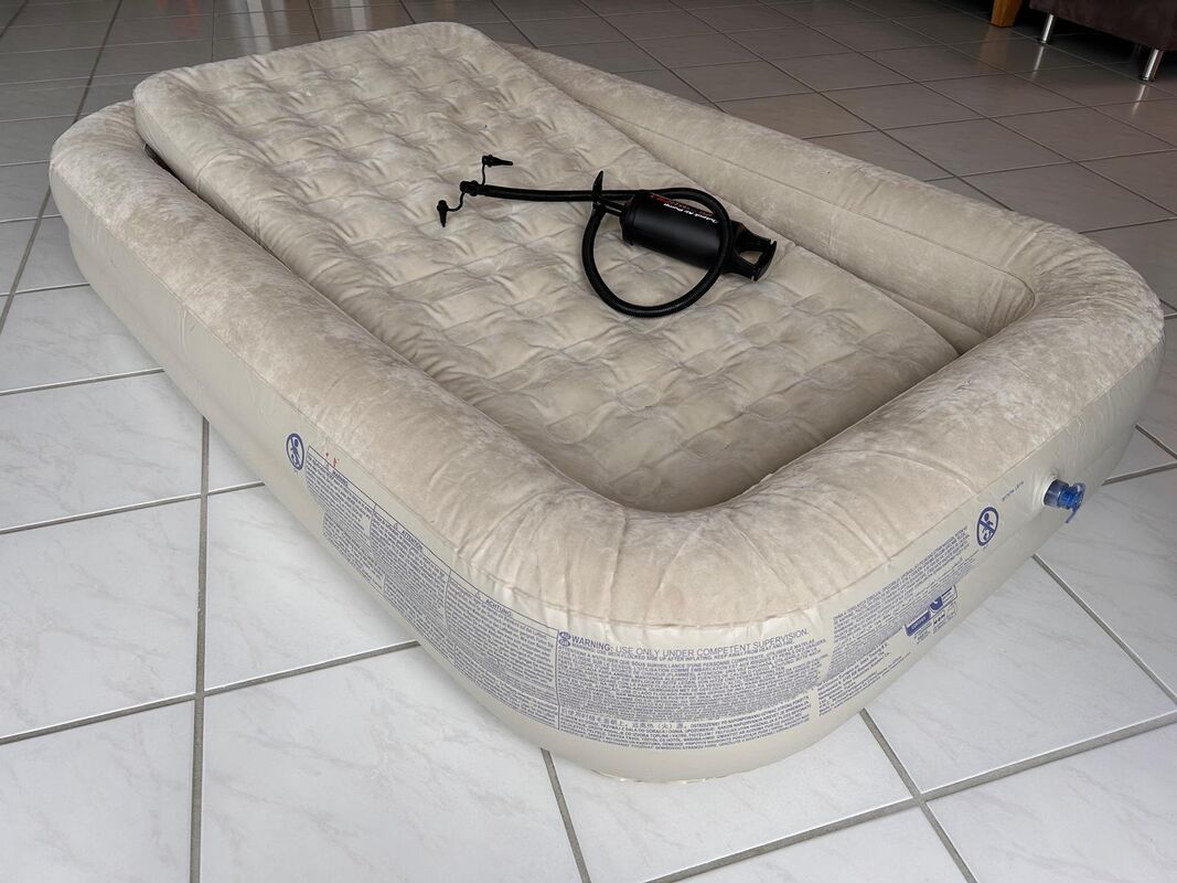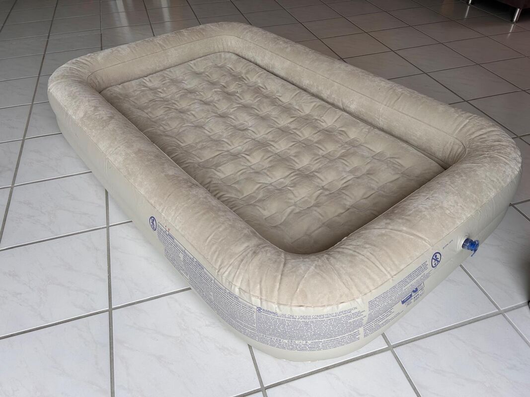 Aufblasbare Matraze für Kinder mit Handpumpe, auch als Reisebett geeignet.