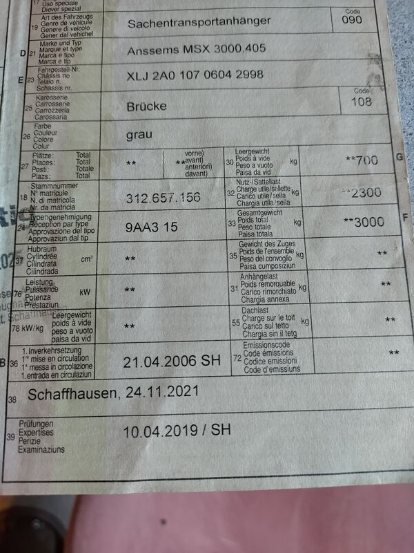 Zu verkaufen Anhänger Anssems MSX 3000.405