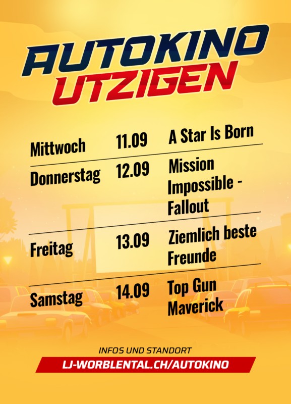 In Zusammenarbeit mit der LJ Worblental und der Schreinerei Bärtschi findet vom 11. bis 14. September 2024 unser Autokino statt.