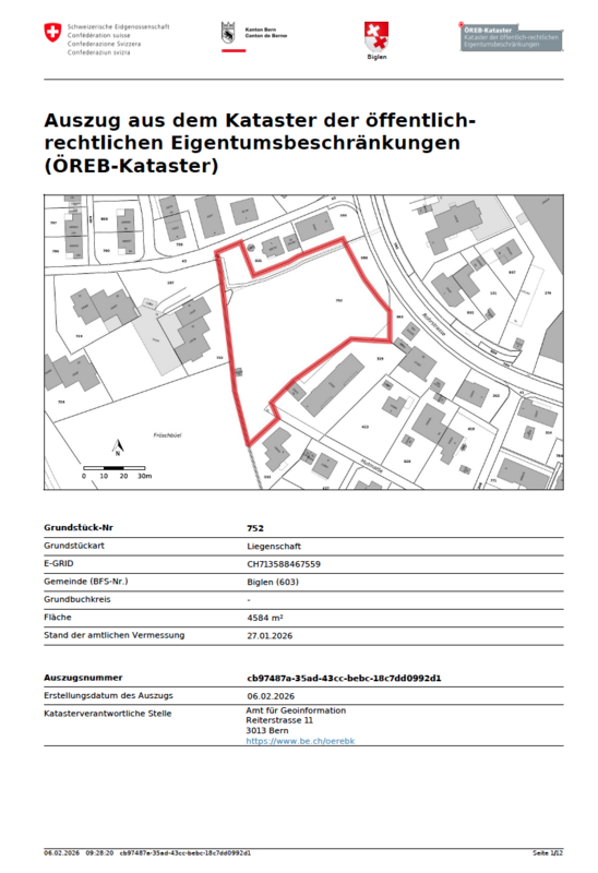 In Biglen steht eine 4’584m2 grosse Bauparzelle in der Wohnzone bzw. Gemischtzone (Parzelle 752) zum Verkauf. Das Bauland ist an attraktiver Lage, zentral im Dorf gelegen und eignet sich ideal für eine moderne Wohnüberbauung. Es besteht eine hohe planerische Freiheit und damit die Möglichkeit, das Grundstück optimal wirtschaftlich zu entwickeln.