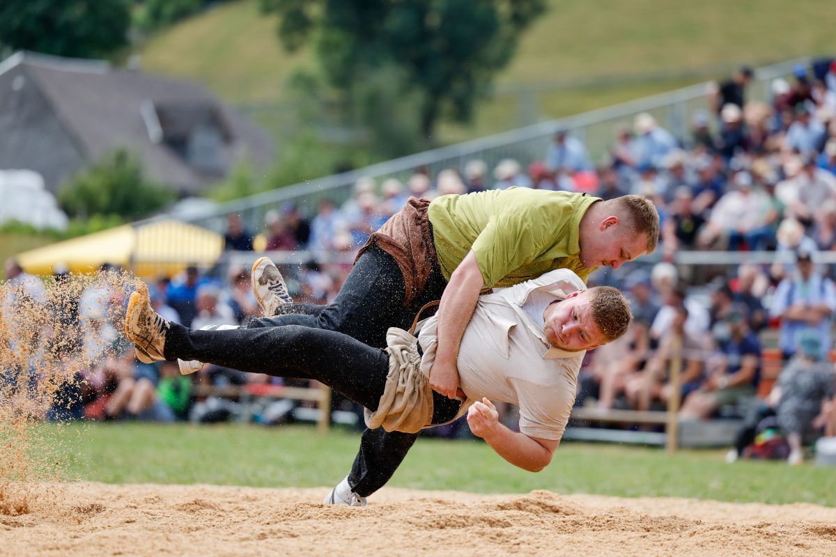 Den ersten Gang gewann Moser eher mühsam. Zwar wurde ihm der Innerschweizer Gast Samuel Schwyzer nicht ernsthaft gefährlich. Doch er machte ihm das Leben schwer, indem er sich aus den Griffen wand und wohl einfach auf keinen Fall verlieren wollte. Dazu kam es trotzdem. Als Moser seinen Gegner schliesslich richtig in den Händen hielt, legte er ihn platt auf den Rücken.