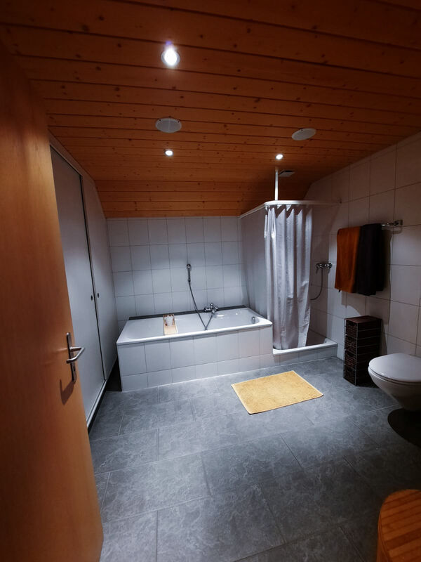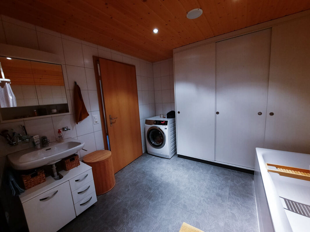 Dazu kommt ein grosszügiges Badezimmer mit einer Badewanne und einer Waschmaschiene sowie ein Estrich und ein Technikraum.