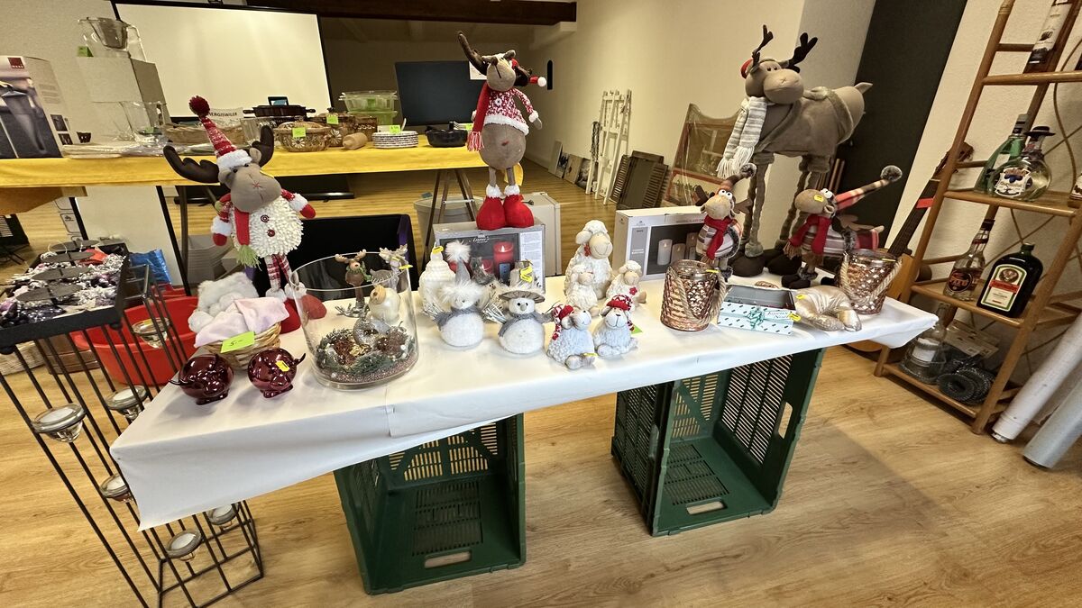 Schöne Deko-Sachen günstig aus Haushaltsauflösung im Schaufenster des ehemaligen Tanner Laden