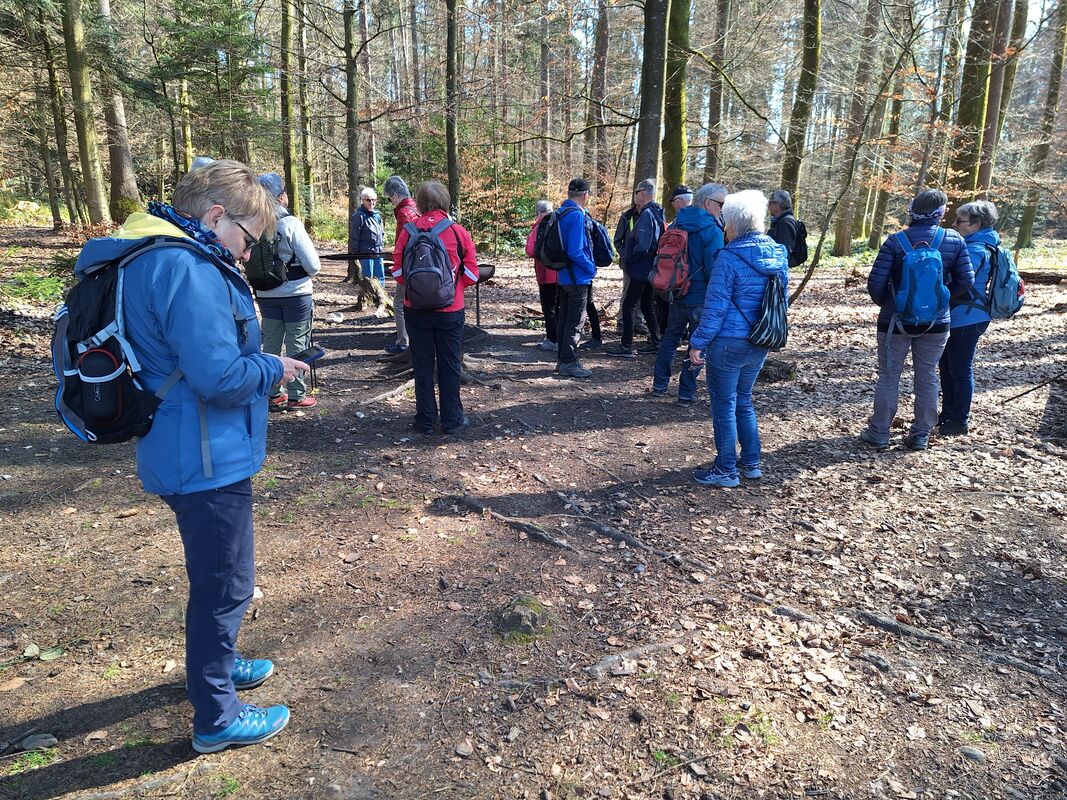 Nach dem Durchqueren des Underbärgetals gings weiter Richtung Pleerwald. Dort erwartete die Gruppe ein kurzer Aufstieg. Dafür wurden alle beim Rastplatz Siebenwegeplatz mit der schönen Aussicht auf die Umgebung von Burgdorf und dem Blick in die Ferne belohnt.