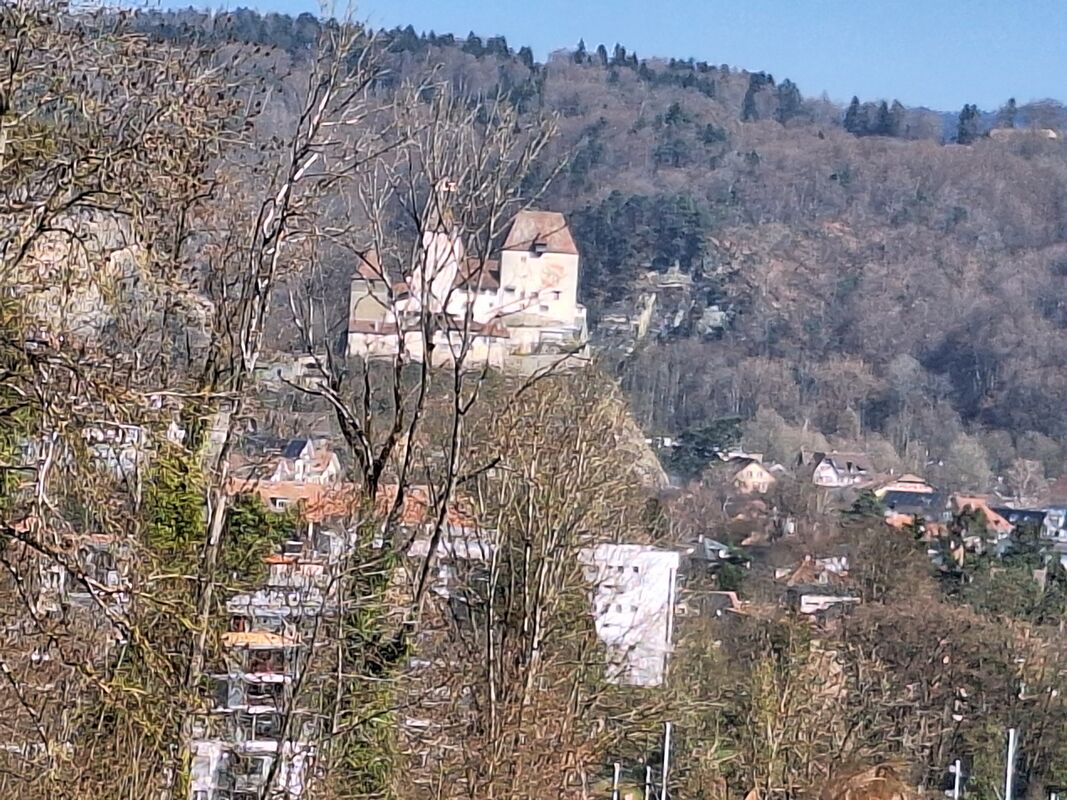 Mit dem Blick auf das Ziel – Steinhof bei Burgdorf– nahmen die Teilnehmenden die letzte Wander-Etappe unter die Füsse. Von weitem grüsste das Schloss Burgdorf mit dem Bernerwappen am Bergfried. Ein kurzer Abstieg und schon erreichten die Wandernden das Restaurant Hofgut.