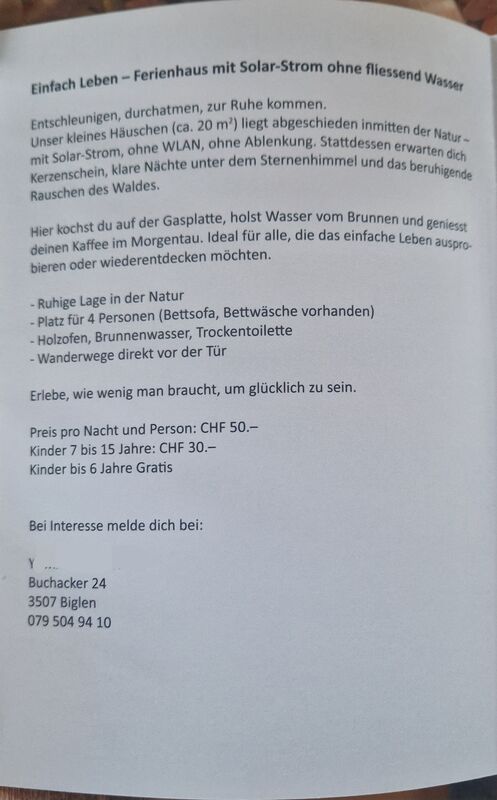Ferienhaus mit Solar-Strom ohne fliessend Wasser