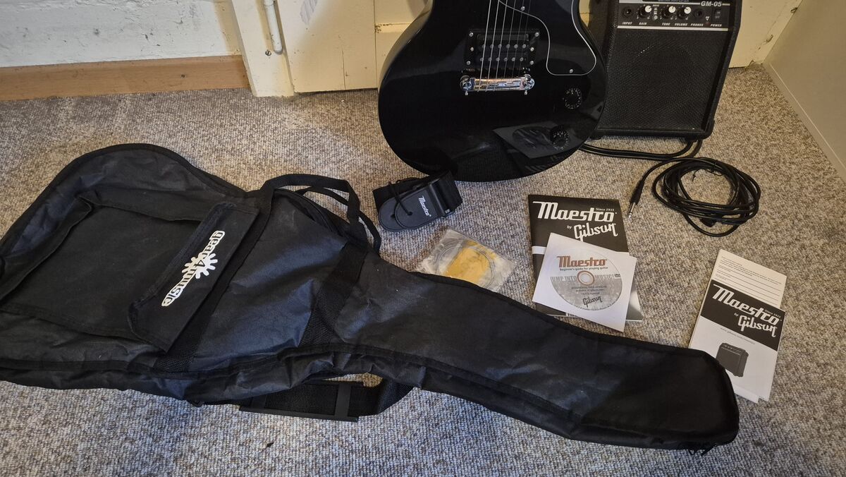 Inkl. Mini-Verstärker, Tasche, Gurt, Ersatzsaiten, DVD