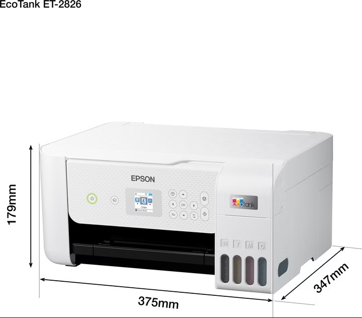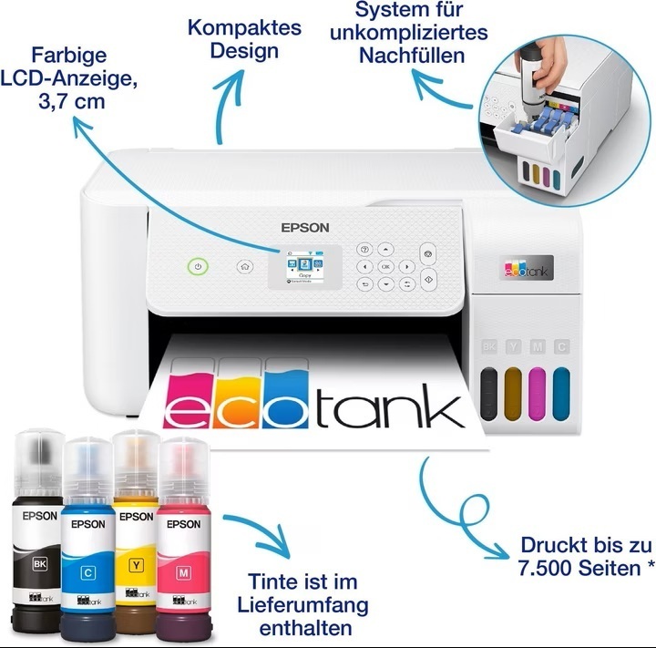EcoTank ET-2826 mit Tintenflaschen System. Druck- und Kopierfunktionen sowie Scanner
