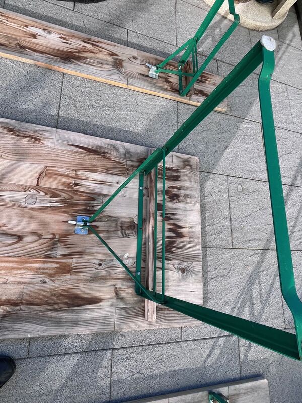 Holz müsste geschliffen und neu lackiert werden. (Lack ist am Abblättern.)