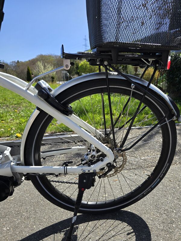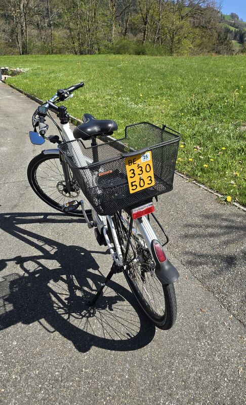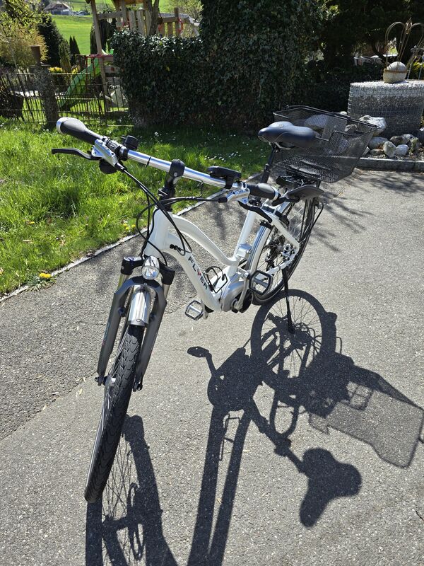Inkl. 2 funktionsfähige Akkus, Ladegerät, 2 Schlüssel, Gepäckkorb hinten.