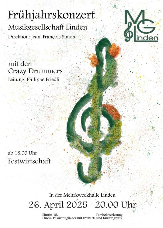 Frühlingskonzert der MG Linden in der Mehrzweckhalle Linden gemeinsam mit den Crazy Drummers