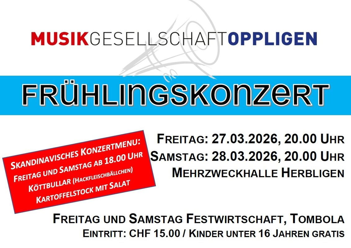 Die Musikantinnen und Musikanten sind in den letzten Vorbereitungen für das Frühlingskonzert, welches am Freitag, 27. März und Samstag, 28. März 2026 in der Mehrzweckhalle Herbligen jeweils um 20.00 Uhr stattfindet. Es erwartet Sie ein spannendes und abwechslungsreiches Musikprogramm unter dem Motto: Jukebox, welches unter der Leitung von unserem Dirigenten, Christian Lüthi, einstudiert wurde – seien Sie gespannt.
