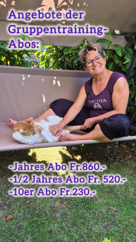 Das klein Gruppen Fitness in meinem Oudoorstudio dass spass macht. Bauch-, Beine- und Poo-Training statt. Komme doch gelich Schnuppern und mach dir gerade selber ein Bild wie es um deine Fitness steht. Ich freue mich auf dich... Dipl. Fitnessinstruktorin đAnita