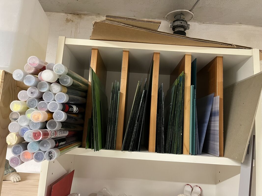 Seit mehreren Jahren besitze ich einen Glasfusing-Ofen und biete Kurse an. Ich habe stets mein Angebot vergrössert und Zubehör dazu gekauft. Da ich zu viele Hobbies besitze, finde ich zu wenig Zeit, um mich intensiv mit dem Glas zu beschäftigen.