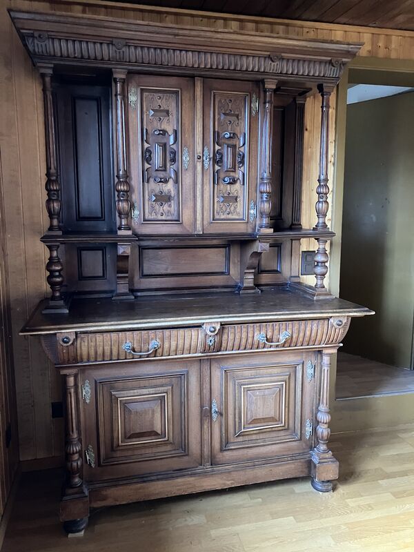 Das Buffet ist vermutlich nicht antik, aber schon alt. Es könnte Rennaissance-Stil sein.