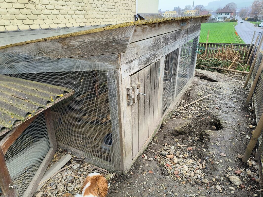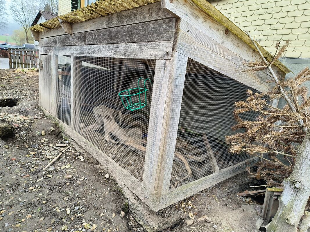 Gratis: Grosses, überdachtes Aussengehege für Kleintiere