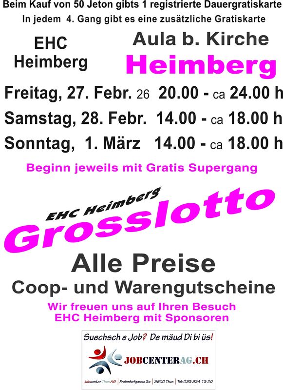 Grosslotto EHC Heimberg mit Sponsor Grafik, Kopie & Druck Aschi E. Dolder Münsigen