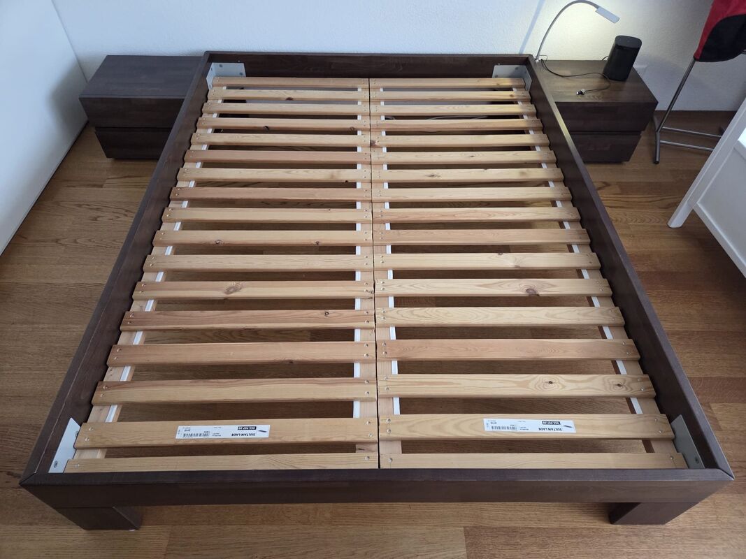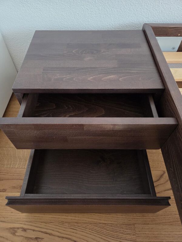 Gut erhaltenes Hasena Bettgestell 160x210cm, Massivholz Buche, Farbe Schokobraun, inkl. 2 Nachttischen (je 2 Schubladen), 2 Nachttischbretter, 2 Lämpchen (befestigbar am Bettgestell oder am Nachttisch) und 2 Lattenroste (Ikea Sultan Lade, ohne Flex) zu verkaufen. Sehr stabil, keine Kratzspuren oder dergleichen. Preis: 490.- Muss in Stettlen abgeholt werden.