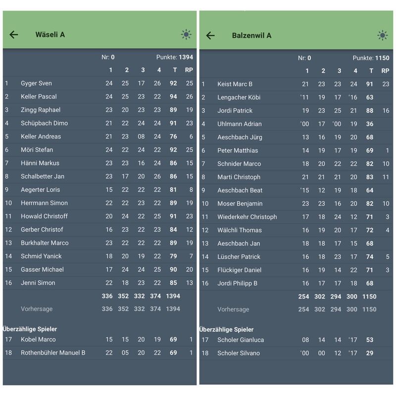 Die besten Einzelleistungen erzielten Pascal Keller mit 94 Punkten (24,25,23,22) sowie Sven Gyger und Stefan Möri mit je 92 Punkten. Dahinter folgten Dimo Schüpbach und Christoff Howald mit jeweils 91 Punkten.