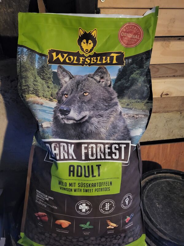 1x Wolfsblut (angefangener 12,5 kg Sack).