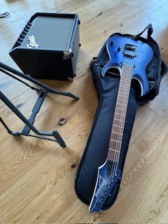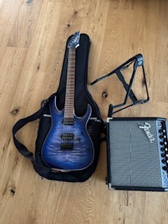 Ich verkaufe mein E-Gitarren-Set, das ich vor 4 Jahren neu gekauft habe. Es besteht aus einer Ibanez RGA42FM-BLF mit Blue Burst Finish und zwei Humbucker Pickups – sieht nicht nur stark aus, sondern klingt auch richtig gut. Dazu gibt’s den Fender Champion 20 Verstärker, der verschiedene Effekte hat und super zum Üben ist.