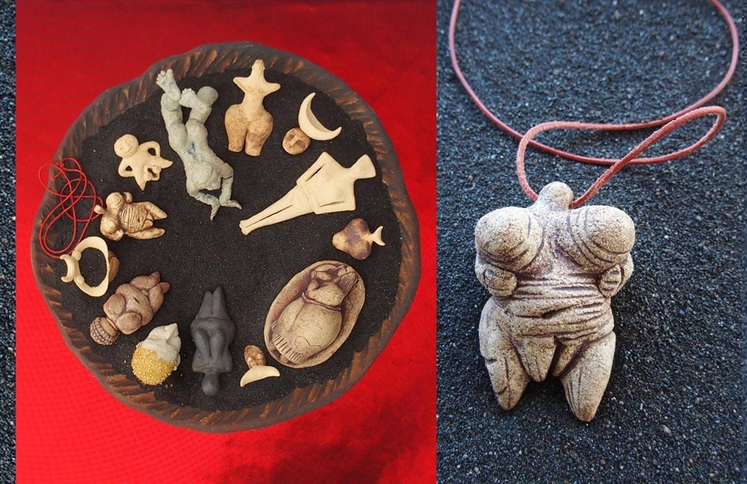 Erleben wir eine unserer prähistorischen Urahninnen in Trance und töpfern sie, so klein wie sie ist, exakt nach - im Tun erleben wir ihre archaische Kraft - auch in uns.