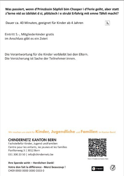 Weitere Infos, siehe Flyer oder elternverein-wichtrach.ch