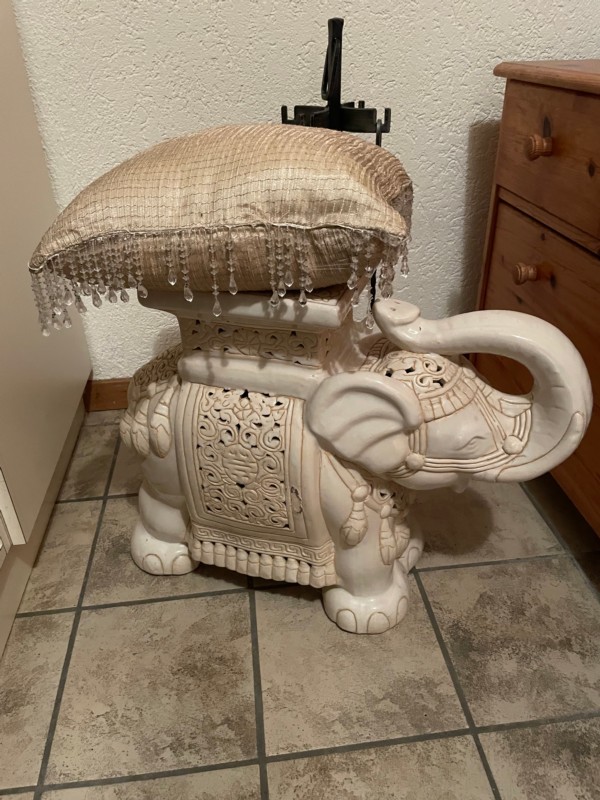 Keramik Elefant mit Kissen. Pflanze kann oben drauf gestellt werden . 70.-