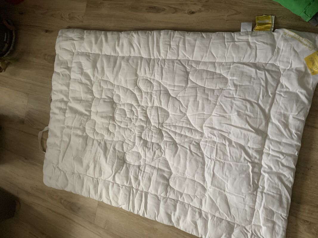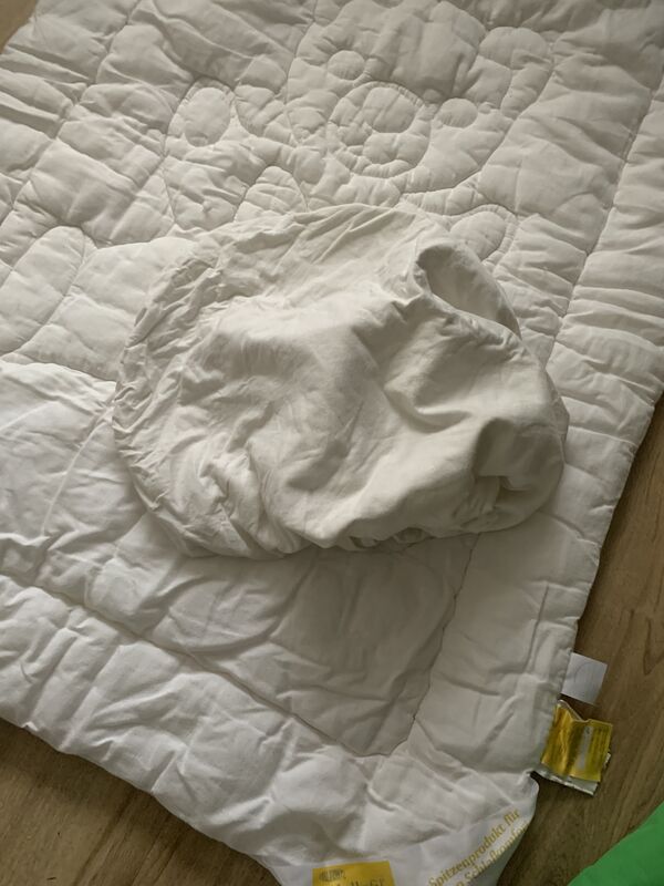 Duvet, Bezug, Moltontuch und ein Laken.
