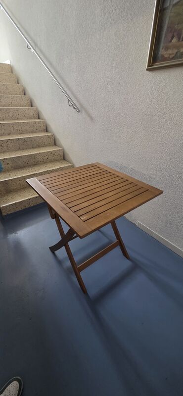 Ich verkaufe einen praktischen und stabilen Balkon-Holztisch aus hochwertigem Akazienholz. Der Tisch ist klappbar und lässt sich einfach zusammenklappen – ideal zum platzsparenden Verstauen oder für den Transport.