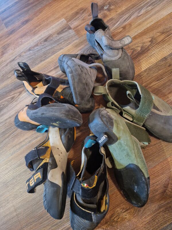Vier Paar gebrauchte, aber noch gut kletterbare Kletterschuhe