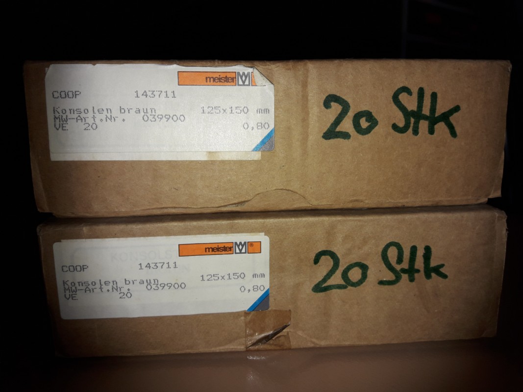 ich biete 40 neue Stahl Konsolen, alle für 15.- Grösse siehe Foto 2, die Konsolen sind Neu!!