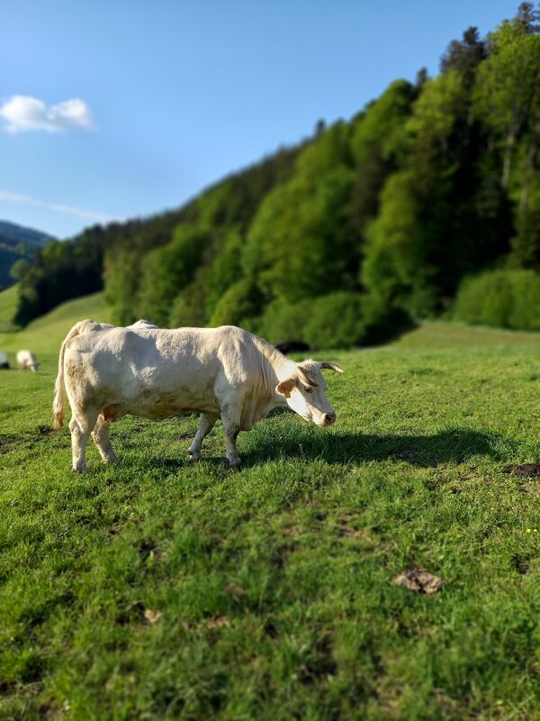 Blaser begann, nach Alternativen zu suchen. Im Internet stiess sie auf den Lebenshof Hof Narr bei Zürich, der Bäuerinnen und Bauern hilft, ihre Betriebe umzuwandeln. Kurz darauf reisten Mitarbeitende von Hof Narr nach Bowil – und waren überzeugt: «Ihr könnt sofort umstellen.» Die Organisation übernahm die Patenschaft für Aura – sie durfte bleiben.