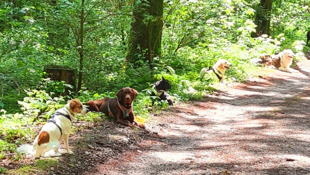 In den Lernspaziergängen werden Grundgehorsam, Begegnungen mit Menschen und Tieren, Abruf-/und Unterordnungsübungen, Denk- und Suchspiele, Sozialspiele und Schnüffelspiele geübt. In der Gruppe spazieren, den Hund geistig fordern, dabei alltagsbezogen Lernen und Spass am gemeinsamen Tun haben: Das sind die Ziele der Lernspaziergänge . Die alltagsbezogenen Übungen werden individuell dem Lernstand der einzelnen Teams angepasst, so das keine Überforderung entsteht. Die Gruppen sind nicht grösser als 6-8 Hunde.