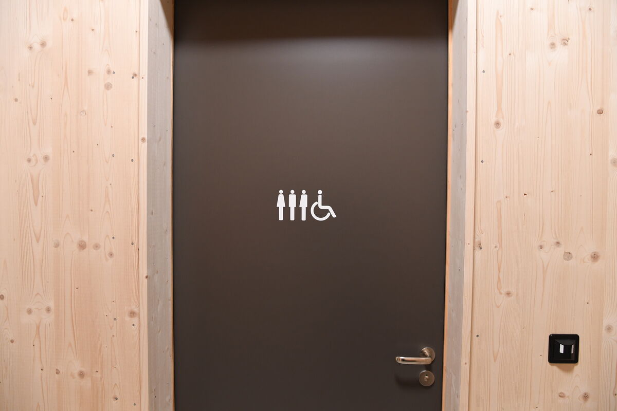 Im Obergeschoss – das barrierefrei per Lift erreichbar ist – befinden sich vier Garderoben sowie eine weitere für das Lehrpersonal. Zwei der Garderoben sind so gestaltet, dass sich auch Menschen mit Beeinträchtigung bequem umziehen können. «Damit alle Garderoben von allen genutzt werden können, haben wir keine Figürchen verwendet, sondern Zahlen und Farben. Dank der Farben finden auch die Kleinsten ihre Garderobe», so Rudolf Weber.