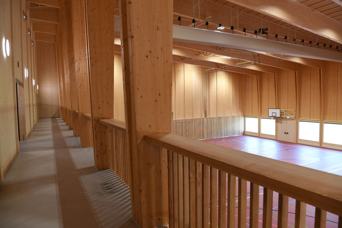 Gross wirkt die neue Halle durchaus, doch sie fügt sich gut ins Ortsbild ein – anders als man es von Dreifachturnhallen oft kennt. Sowohl aussen wie innen dominiert ein Material: Holz. «Es soll eine praktische und zweckmässige Turnhalle sein», erklärt Gemeindepräsident Urs Schweizer. Deshalb sei nicht jede Wand gestrichen und nicht überall das teuerste Holz verbaut worden.