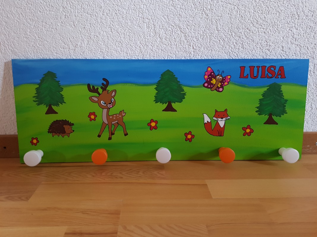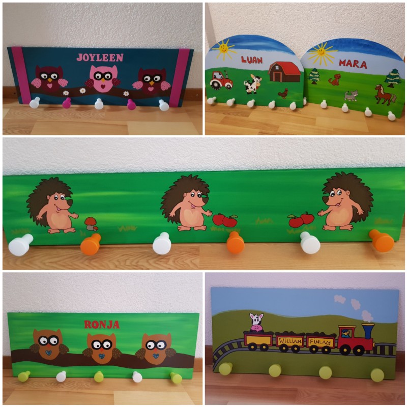 Jede Messlatte und Garderobe wird Leidenschaftlich von Hand bemalt.