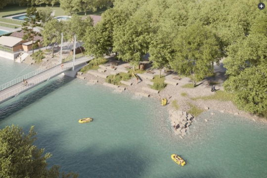 Nach dem Bau der neuen Schützenfahrbrücke soll auch der Vorplatz der Badi aufgewertet werden. Das Ufer erhält eine neue Gestaltung mit einer Ausstiegstreppe für Aareschwimmerinnen und Aareschwimmer. Geplant sind zudem neue Aufenthaltsbereiche mit Sitzgelegenheiten aus Naturstein, eine behindertengerechte Bushaltestelle sowie zusätzliche Veloparkplätze.