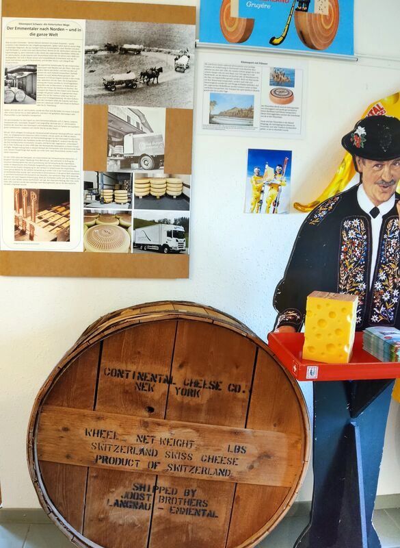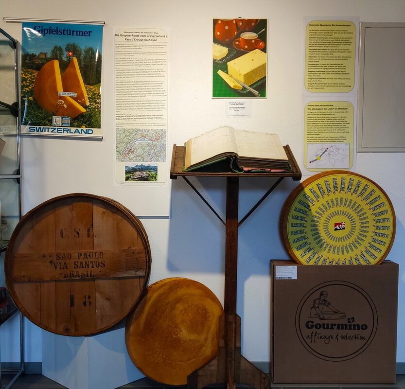 Käseexport hat eine lange Tradition – und auch eine wechselvolle Geschichte. Die Ausstellung informiert über die klassischen historischen Exportwege des Gruyère, des Sbrinz, des Emmentalers und über die heutigen Exportpraktiken mit Wort, Bild, Statistiken, Gerätschaften etc. Sie macht Transportwege und Transportmittel sichtbar und präsentiert die Formen und die Werbung der heutigen Export-produkte der bekanntesten Käsesorten der Schweiz wie auch die neuen technischen Möglichkeiten der Qualitätssicherung.