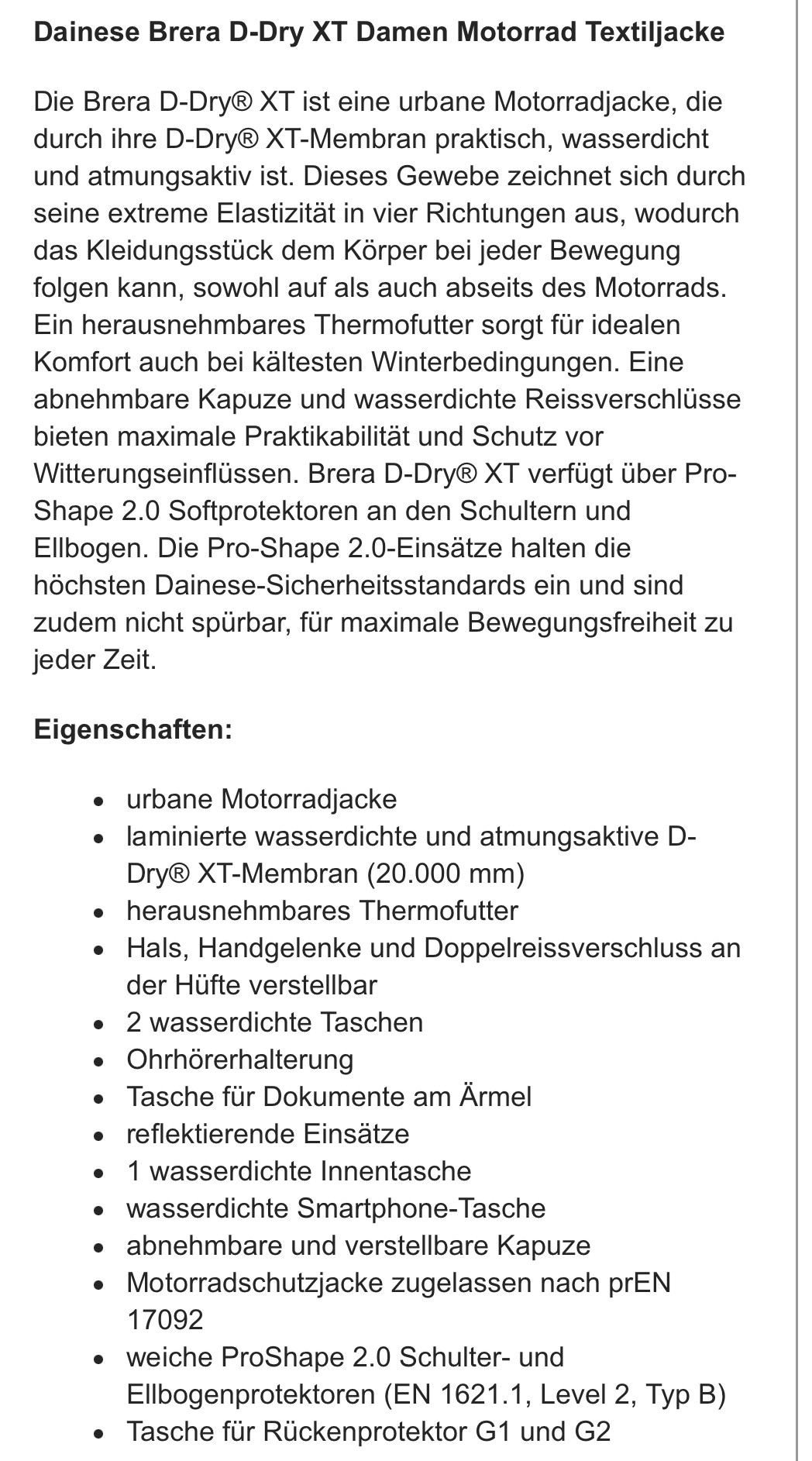 Neue Motorradjacke Dainese Brera D Dry XT