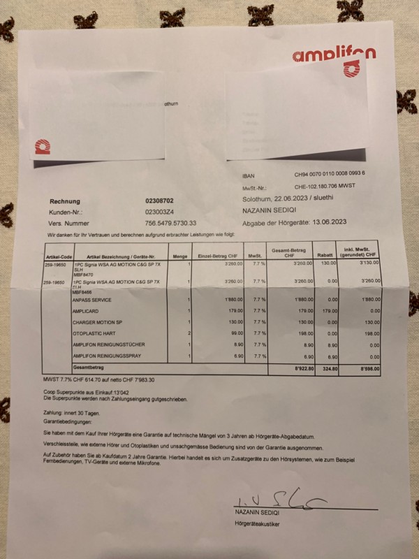 Neues Hörgerät ( Unbenutzt infolge Todesfall ) gekauft bei Amplifon Garantie bis Juni 2026 NP: 6520.- VP: 1500.-